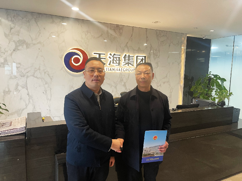 图为<茅箭区人民检察院党组书记、检察长查孟达走访湖北天海石油集团有限公司董事长蔡燕美>
