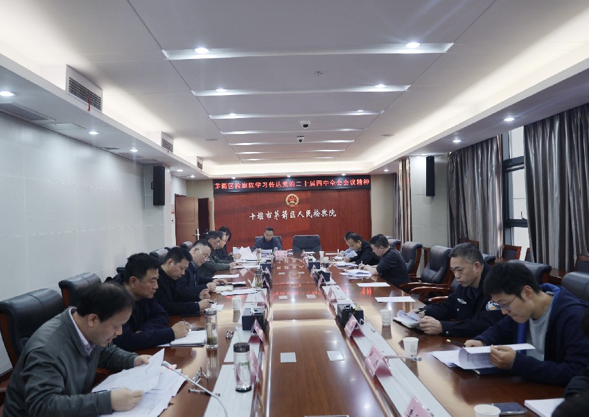 10月30日,茅箭区检察院召开党组(扩大)会议,专题传达学习党的二十届四中全会精神,研究部署贯彻落实举措。会议由党组书记、检察长查孟达主持,全体党组成员、检委会专职委员、各部门负责人参加会议。